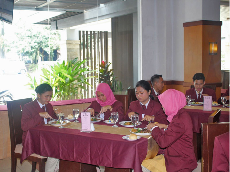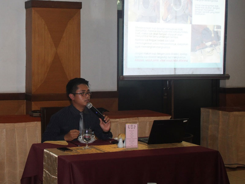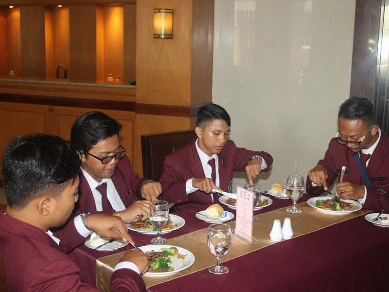 Mahasiswa FEB UNTAG Cirebon Prodi Perhotelan Tahun Akademik 2022/2023. Kegiatan Table Manner, Praktik Making Bed, Pelatihan Etiquette & Personal Image Mahasiswa D3 Perhotelan, Fakultas Ekonomi dan Bisnis di ENHII Hotel Bandung.